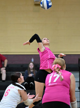 Freshman Middle Madison Tauber was a force at the net, following closely with 5 kills.
